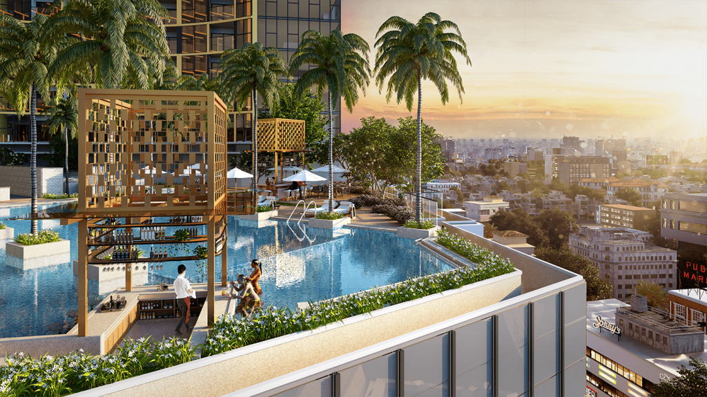 Tiện ích đa dạng: Hồ bơi, kidzone, phòng gym, yoga, sauna, thư viện, sân vườn,…