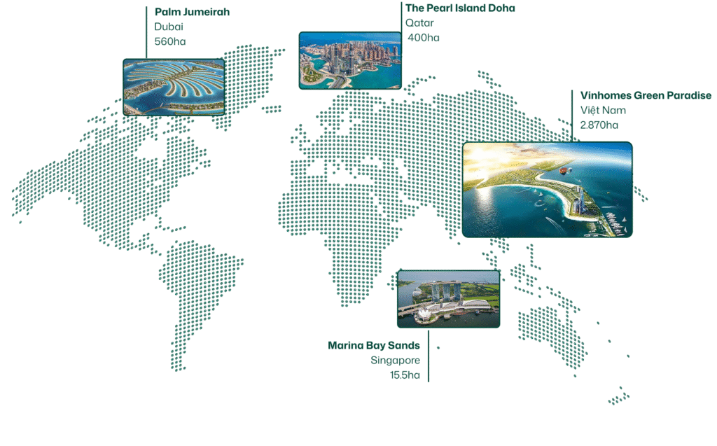 Nếu Dubai có Palm Jumeirah, Singapore có Marina Bay Sands, thì Việt Nam tcó Vinhomes Green Paradise: Biểu tượng đô thị lấn biển mới của thế giới, chuẩn ESG++